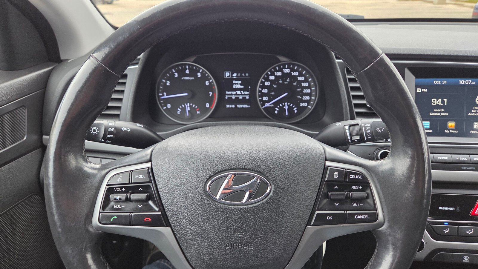 JUST ARRIVED! 2018 Hyundai Elantra “GL” fwd automatic with only 169,189 kms. We sold this vehicle over 5 years ago with just over 40,000 kms, and where happy to get it back in on trade. This vehicle was primarily used for a mostly highway work commute. This vehicle is fully loaded including heated front seats, heated steering wheel, Bluethooth, AUX inputs, remote start, alloy wheels, brand new all weather tires and more. This Elantra is powered by a very economical 2.0L 4 cylinder engine, and is backed by an automatic transmission.